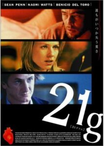 もう一本は、映画『21グラム』である。「人は死ぬときに21グラムだけ軽くなる」ことから、このタイトルになったようだ。魂の重さなのか。心臓移植や人工授精を題材に、この映画で描かれるのは、人を殺しても、自殺しようとしても、常に生き延びてしまう男と、生き延びるために手に入れた心臓を、自らの手で無残に破壊してしまう男の、壮絶な戦いのドラマである。