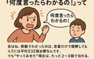 つまり『何度言ったらわかるの!』って叱るのは、実は2~3回しか言ってないのに“物覚えが悪い”と決めつけてるのと同じ。これ、理不尽ですよね。