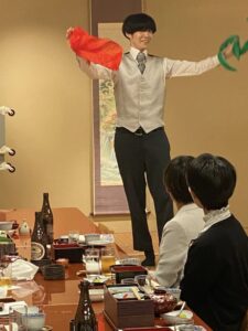 神楽坂の料亭で、芸者さん、手品あり、さすがにすごい人脈でした。